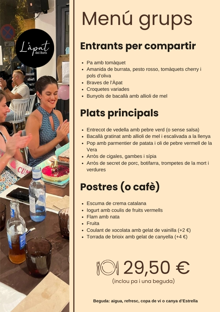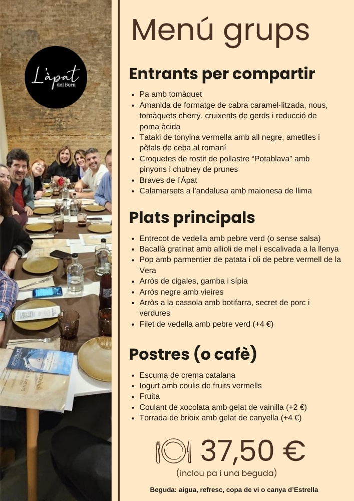 Perfecte per a grups a partir de 6 persones (Disponible amb reserva prèvia)